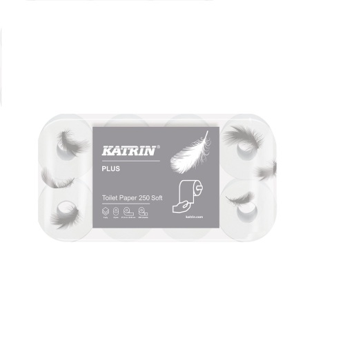Katrin, 3 plis, papier toilette blanc sur rouleau arborant Nordic Swan et Ecolabel UE Flower. Idéal pour les espaces publiques plus exclusifs.